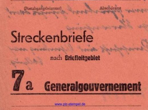 Vorbindezettel für Bunde mit Streckenbriefe nach Briefleitgebiet 7a Generalgouvernement